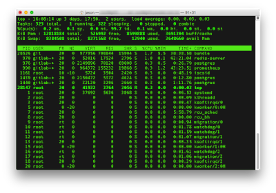 可是問題來了,這個單色調的介面看久了感到枯燥乏味,對於資訊的陳列也不是那麼容易閱讀,更別說操作熱鍵了,但 top 卻是所有 UNIX Like 必定擁有的指令,不得不會。