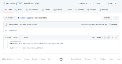 # 下載指令稿 cd /etc/cron.d wget https://raw.githubusercontent.com/jasoncheng7115/it-scripts/master/ubddns/renew_ubddns